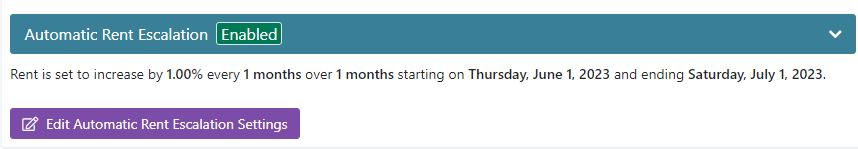 - Under Automatic Rent Escalation (Enabled), click on Edit Automatic Rent Escalation Settings