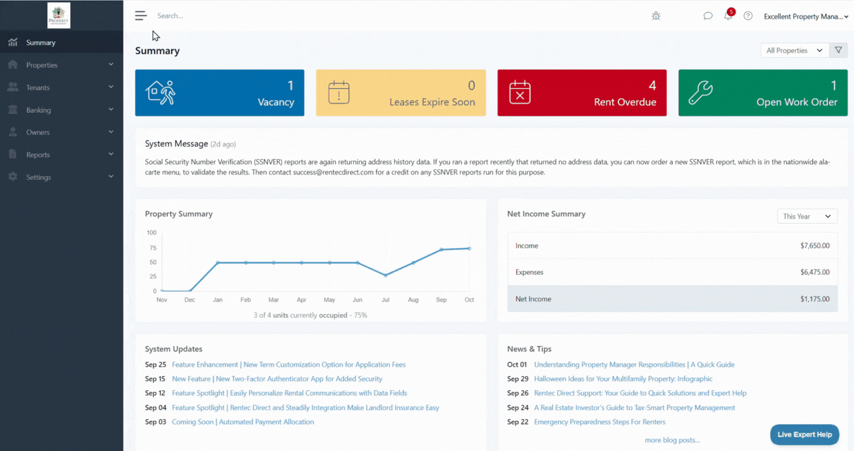 The Rentec Direct property management software tracks transactions at both the property and tenant levels, and it also has the added benefit of tracking banking activity. These ledgers should accurately reflect the activity in your bank account.