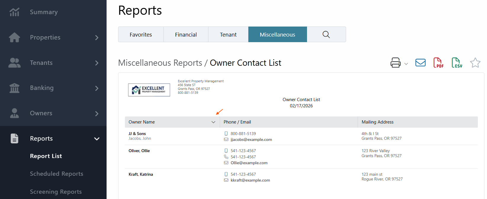- Under Miscellaneous, click on Owner Contact List