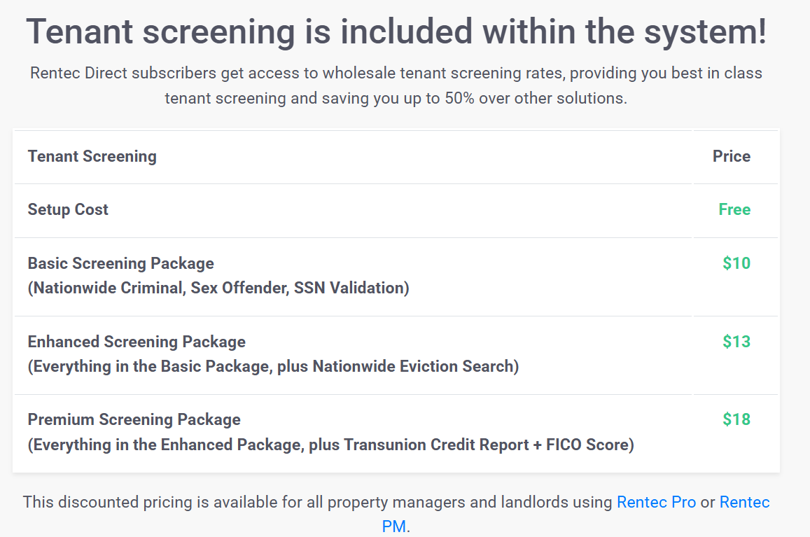 Tenant screening reports are essential in tenant selection and protecting your investments. Rentec Direct property management software provides both Pro and PM clients with an extensive list of Tenant Screening Products.