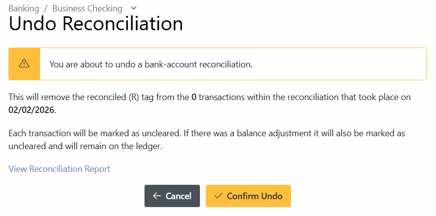- Click the Undo link next to the Reconciliation report