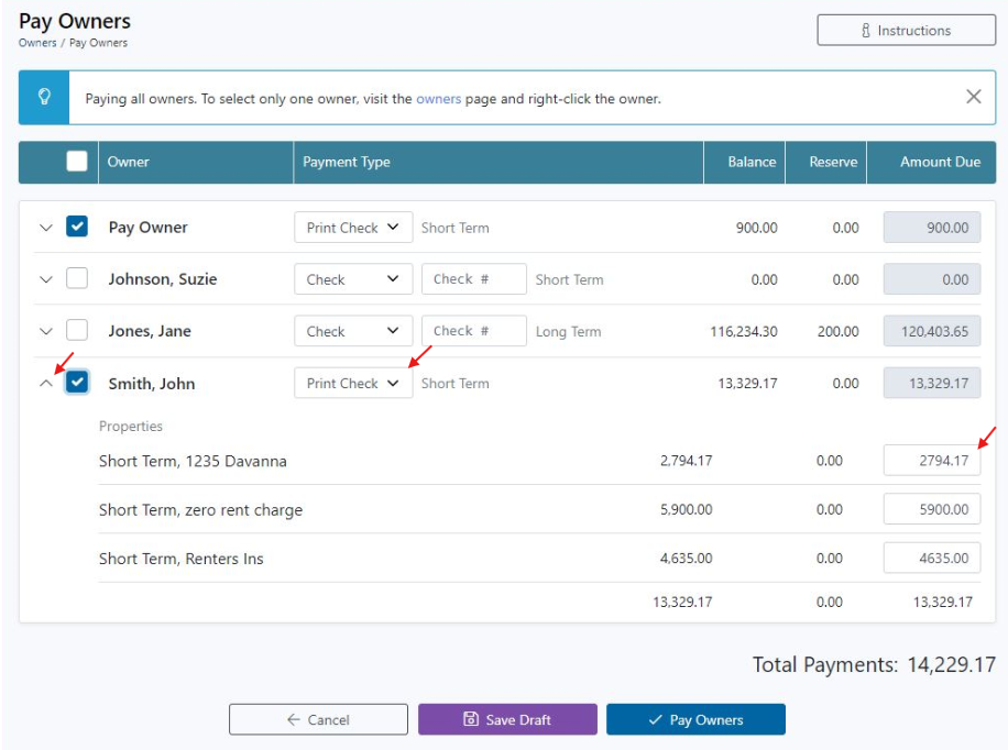 Pay one, multiple, or all owner disbursements in one transaction.