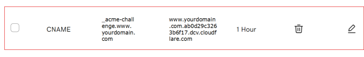 _acme-challenge.www.yourdomain.com CNAME www.yourdomain.com.ab0d29c3263b6f17.dcv.cloudflare.com
