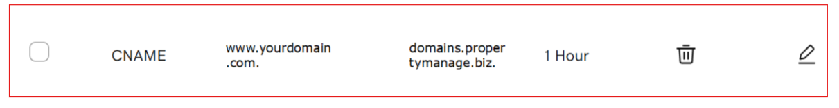 www.yourdomain.com. CNAME domains.propertymanage.biz.