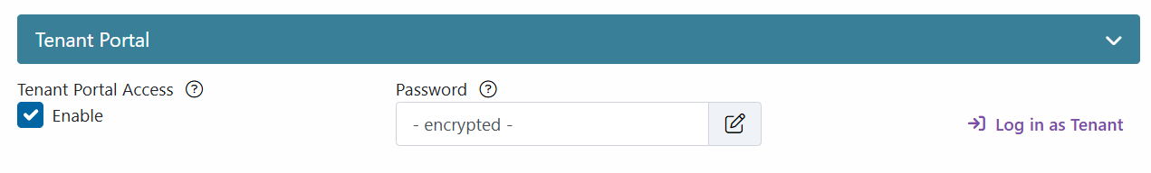 - Under Tenant Portal, check Enable Portal Access, then enter a password or click on the circle arrow icon to auto-generate one