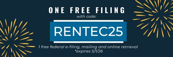 Get one free federal tax e-filing, mailing, and online retrieval when you file your taxes online through Rentec Direct.