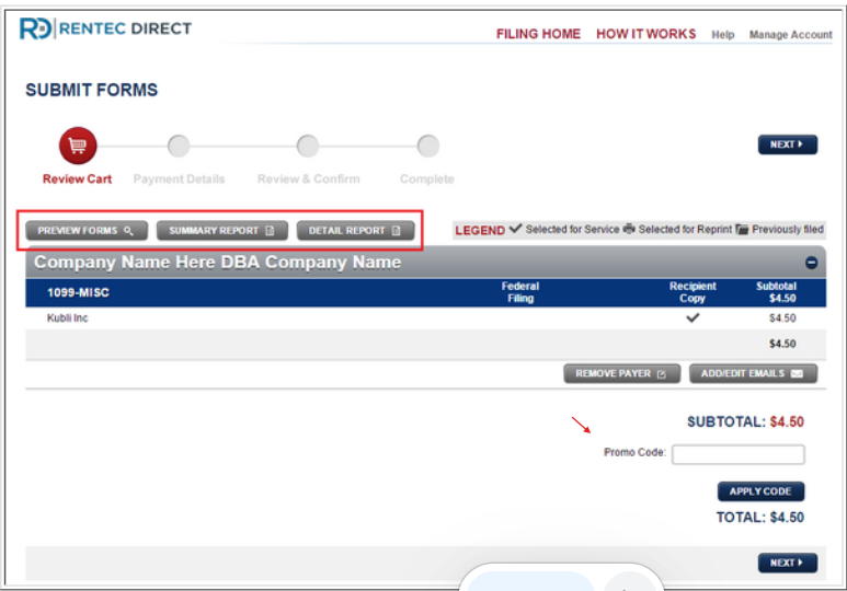 Printing Access: You can preview and print summary reports while processing. Access to print the actual 1099-MISC and 1099-NEC forms is only granted after you have paid to e-file or used the Recipient Mail & Online Retrieval service.