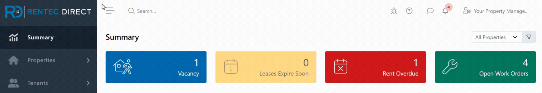 - In the upper left corner of your Rentec Direct account (above the side menu)