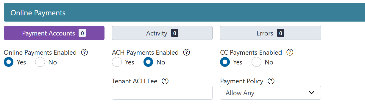 You can modify tenants' online payment options on a per-tenant basis.