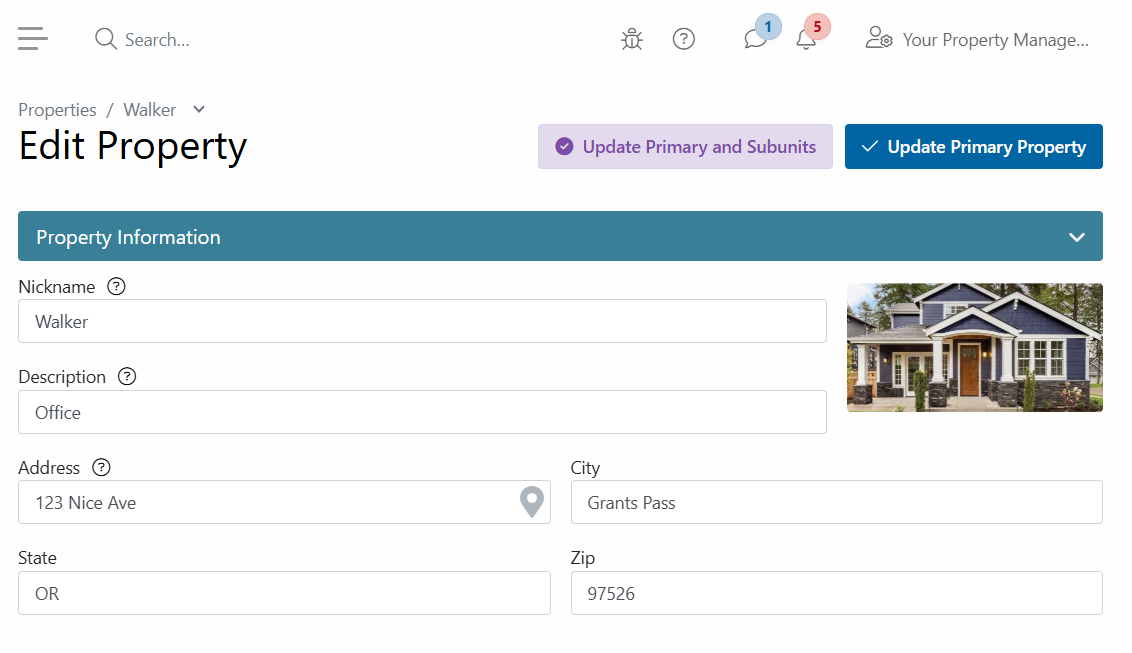 System Note: Save time when editing multi-unit properties by making changes to the primary unit, then select Update Primary and Subunits.