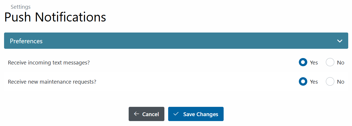 - Enable the Push Notification preference in your Rentec Direct account from your computer.