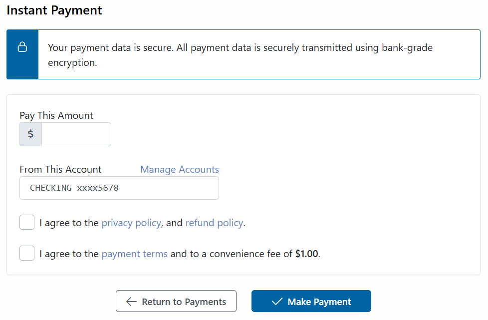 - Click on Make a Payment, then select one of the payment options